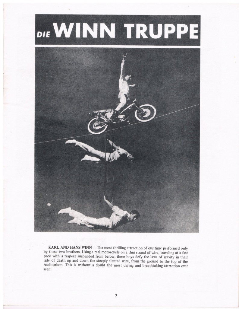 I showed this picture to some members of the Winn family and they informed me that the third person pictured with Karl & Hans is John. Also the copy over the photo was supposed to read “The Winn Troupe”, but was printed in the wrong language by mistake.
