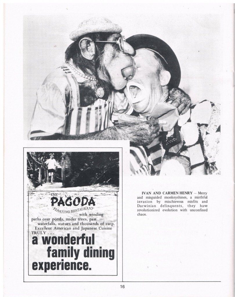 This is not Ivan Henry with one of his chimps. As a matter of fact I don’t know who it is in this photo. I can tell you that Henry’s Chimps was on the show in Honolulu, July 17-27-1969.
